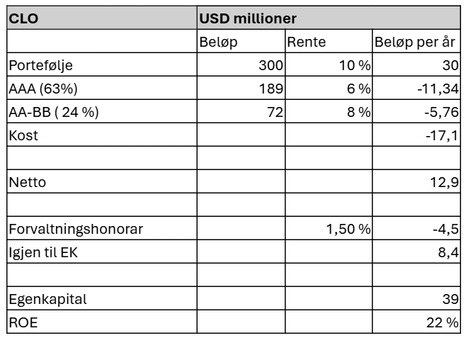 Dette er jo gull! 22 % avkastning på egenkapitalen (ROE), og aktørene kan le hele veien til banken. I tillegg får aktørene forvaltningshonorar på hele beløpet i CLO-en, suksesshonorar på toppen, og gebyrer som tilrettelegger. Den er ofte på 20% av avkastningen over 6-7%. Så der stikker de av med nye ~3% av ROE. Som tilrettelegger av CLO’en mottar de i tillegg en fee på 0,5-1%. Det tjenes penger i flere steg og over flere år. Sist, men ikke minst, veldig mange av disse aktørene eier en god del av egenkapitalen selv.